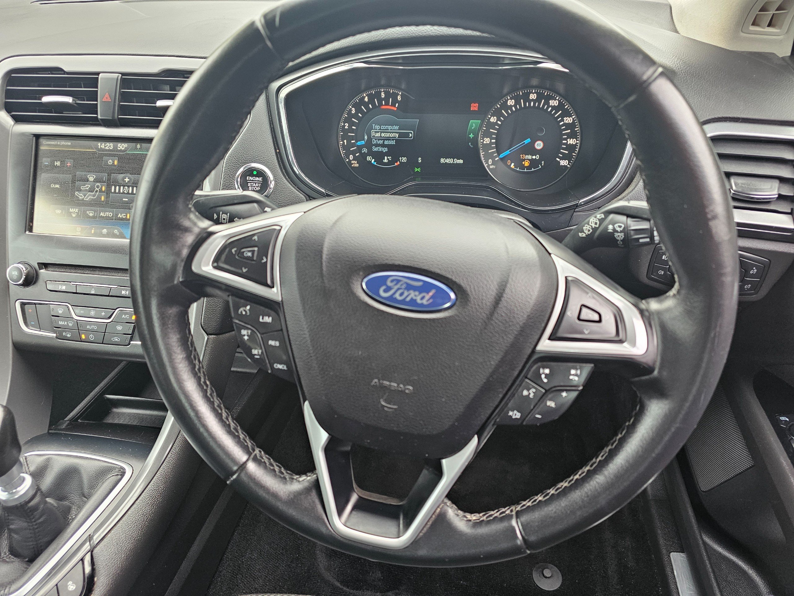 Ford Mondeo 2.0 TDCi ECOnetic Titanium 5dr + Finance and Delivery available + ULEZ Compliant + £20 a year Road Tax + 2 keys + MOT till Oct 26 + 80k miles + Fresh service completed at 80k, and car has service history + Sat Nav + Touch screen Ford Sync system with loads of features + Cruise Control + Heated windscreen + Bluetooth connectivity + AUX and USB media + Lane assist + Parking assistant + 360 park sensors + Auto headlights + Push button start + Electric windows and folding heated door mirrors + Multifunction steering wheel + Full information dashboard + Cup holders + Rear ventilation +2014, registered dec 2014. Diesel + 6 Speed Manual + Warranty packages available + Driveaway insurance arranged